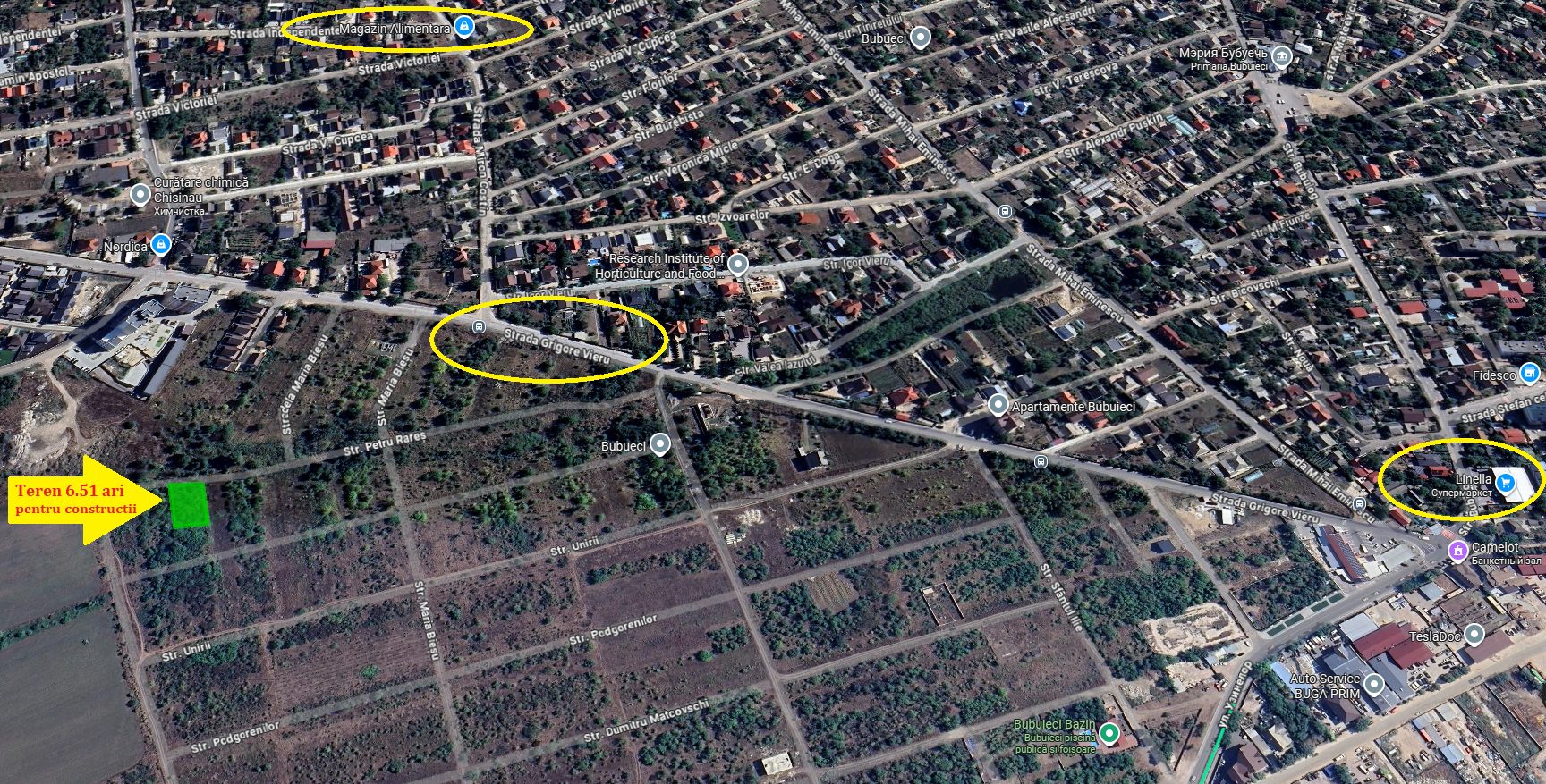 Vindem teren cu o suprafață totală de 6.51 ari în mun. Chișinău, com. Bubuieci. Investiți într-un teren situat într-una dintre cele mai dinamice și în creștere suburbii ale Chișinăului, unde cererea pentru locuințe este în continuă creștere. Terenul din Bubuieci oferă posibilitatea de a construi propria casă, un duplex pentru două familii sau un proiect imobiliar cu randament ridicat. AVANTAJE — Amplasare foarte aproape de capitală, ceea ce crește lichiditatea și valoarea proiectelor viitoare. — Utilizare flexibilă: casă individuală, duplex, townhouse-uri sau proiect investițional. — Comună aflată în plin proces de modernizare: infrastructură, transport și instituții sociale în dezvoltare continuă. — Bubuieci atrage tot mai multe familii și antreprenori — zona devine un nou pol al construcțiilor cu regim redus de înălțime. — Creșterea constantă a prețurilor la terenuri consolidează beneficiul pe termen lung. CARACTERISTICI ALE TERENURILOR Suprafață: 6,5 ari (20*33m). Locație: mun. Chișinău, com. Bubuieci, str. Petru Rareș. https://maps.app.goo.gl/bqZNGveuRhtjLmm4A Formă și dimensiuni ideale pentru diverse tipuri de proiecte. Zonă cu dezvoltare demonstrată: 13,6 milioane lei — bugetul de dezvoltare al comunei în 2024. Construită str. Gr. Vieru, modernizări la grădinițe și proiectarea unui nou liceu. Două rute de autobuz către Chișinău: nr. 21 și nr. 36. În ultimii 5 ani — 24 milioane lei investiți în comună.