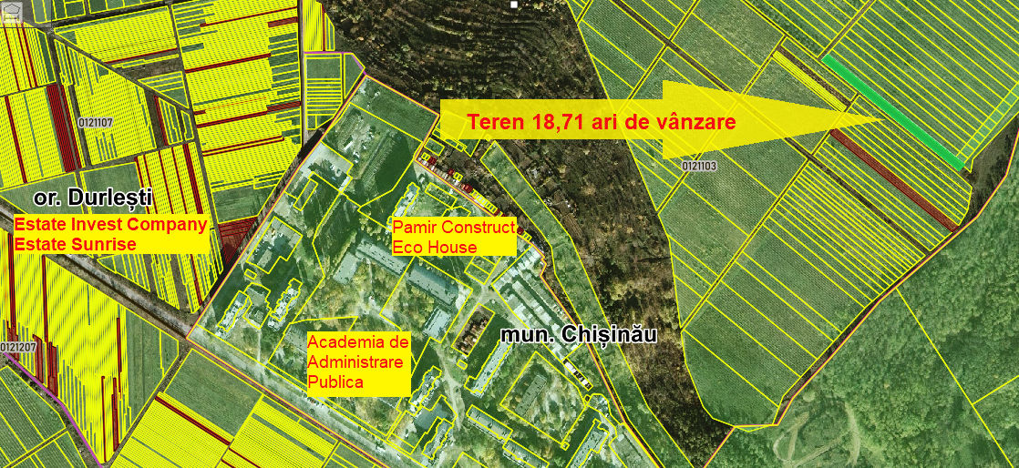Vindem un teren in zona promitatoare sect.103 la granita cu raioanele urbane Chisinau Centru (50m), Buiucani (250m) si masivele Durlest in dezvoltare rapida sect.107 si sect.207 unde se afla Academia de Administrare Publica. Pentru unele dintre zone, consiliul orășenesc a aprobat deja un plan de dezvoltare a orașului cu autorizații de construcție ulterioare. Granițele dintre Chișinău și Durlești sunt șterse treptat prin lucrări de construcție și se pun bazele pentru construcția de ansambluri rezidențiale, facilități sociale și case particulare. Cât credeți că va crește prețul terenului atunci când proiectele de construcție o să fie lingă teren? Cum ai putea profita de acest site? În timp ce la o distanță de 500-1000 de metri Dezvoltatorii (Estate Invest Company — Estate Sunrise, Pamir Construct — Eco House, A-casa — HORA Village) investesc milioane în construcția de ansambluri rezidențiale, la doar 30 de metri de șantier investitorii au consolidat deja câteva parcele în dimensiuni, potrivit pentru ansambluri rezidențiale, statul dezvoltă drumuri și comunicații, creând condiții pentru o creștere ulterioară, cine știe ce perspective vi se vor deschide dacă veți intra în această zonă în stadiul formării ei?